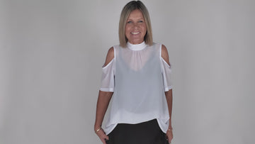 Love this top!! Sleeves add a bit of flare that makes this top just a bit different….. I where to work, and casually with Brooklyn Blak New York pants or the Brooklyn Blak Austin skirt….. also just throw over a long under garment/slip, some white sneakers throw on the Arizona top for a great looking outfit and soo easy to wear!!
